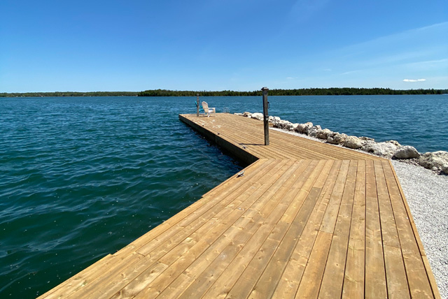 Wake up to the soothing sounds of waves gently lapping the white limestone shoreline and take in some of the most breathtaking sunrises from the comfort of your bed. You can then step out the sliding glass doors and enjoy your coffee on our large deck which provides an unobstructed view of our dock and the lake.