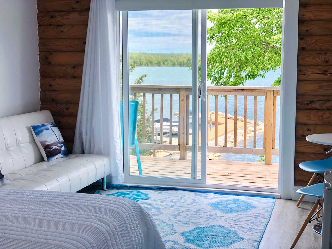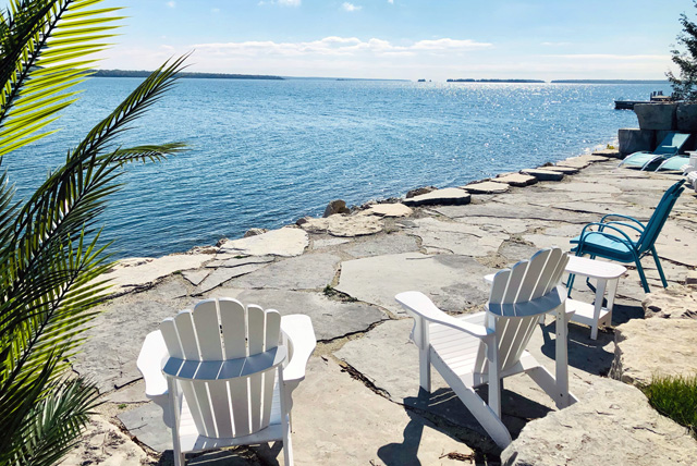 Wake up to the soothing sounds of waves gently lapping the white limestone shoreline and take in some of the most breathtaking sunrises from the comfort of your bed. You can then step out the sliding glass doors and enjoy your coffee on our large deck which provides an unobstructed view of our dock and the lake.